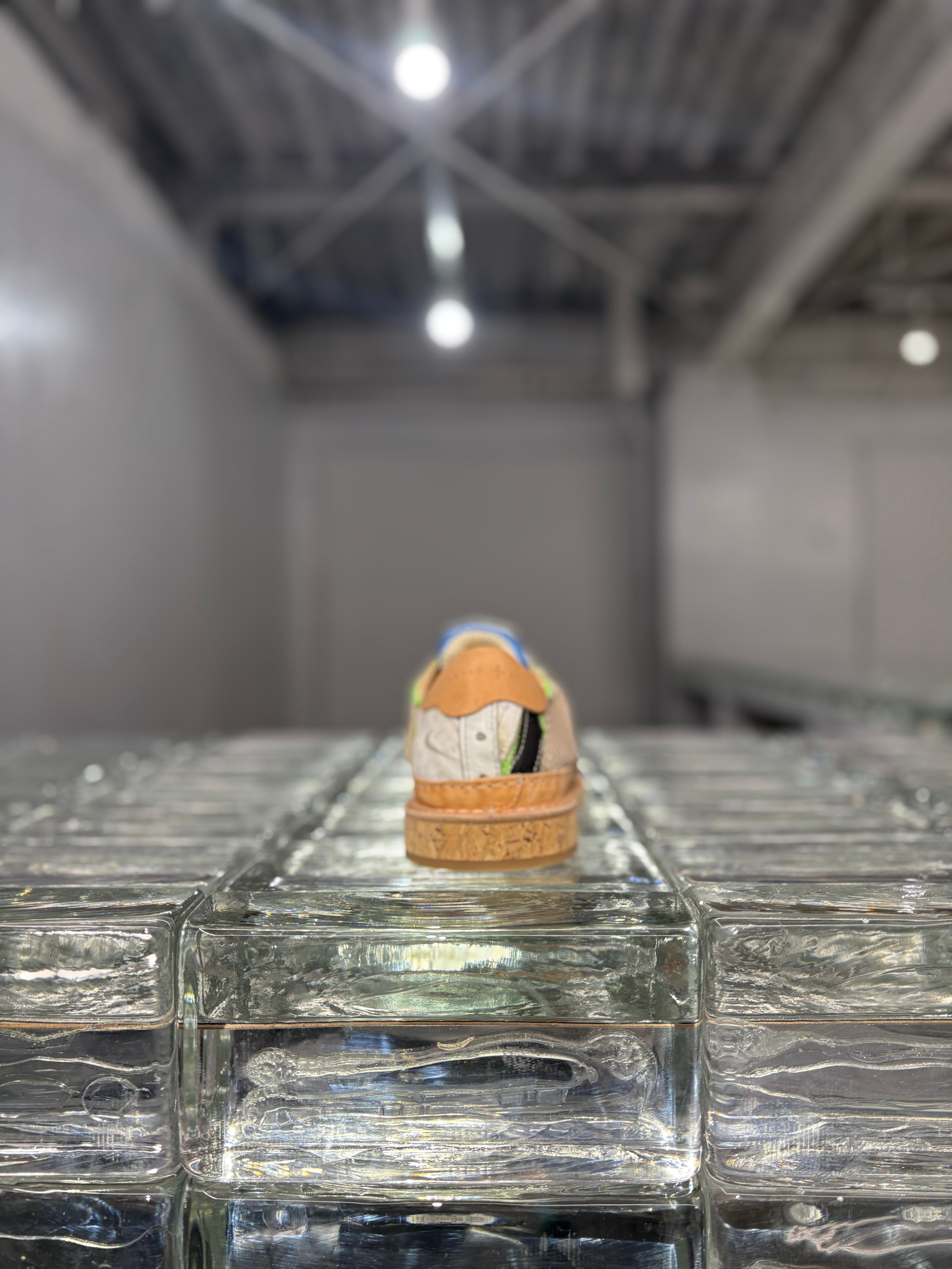 そこから裁断しコルクソールのシューズに再構築。